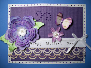Both frames that the image is mounted on are cut from my Cricut Lacy Labels cartridge. I inked the edges of the green layers, and outlined the purple to cover up the interior white of the paper.