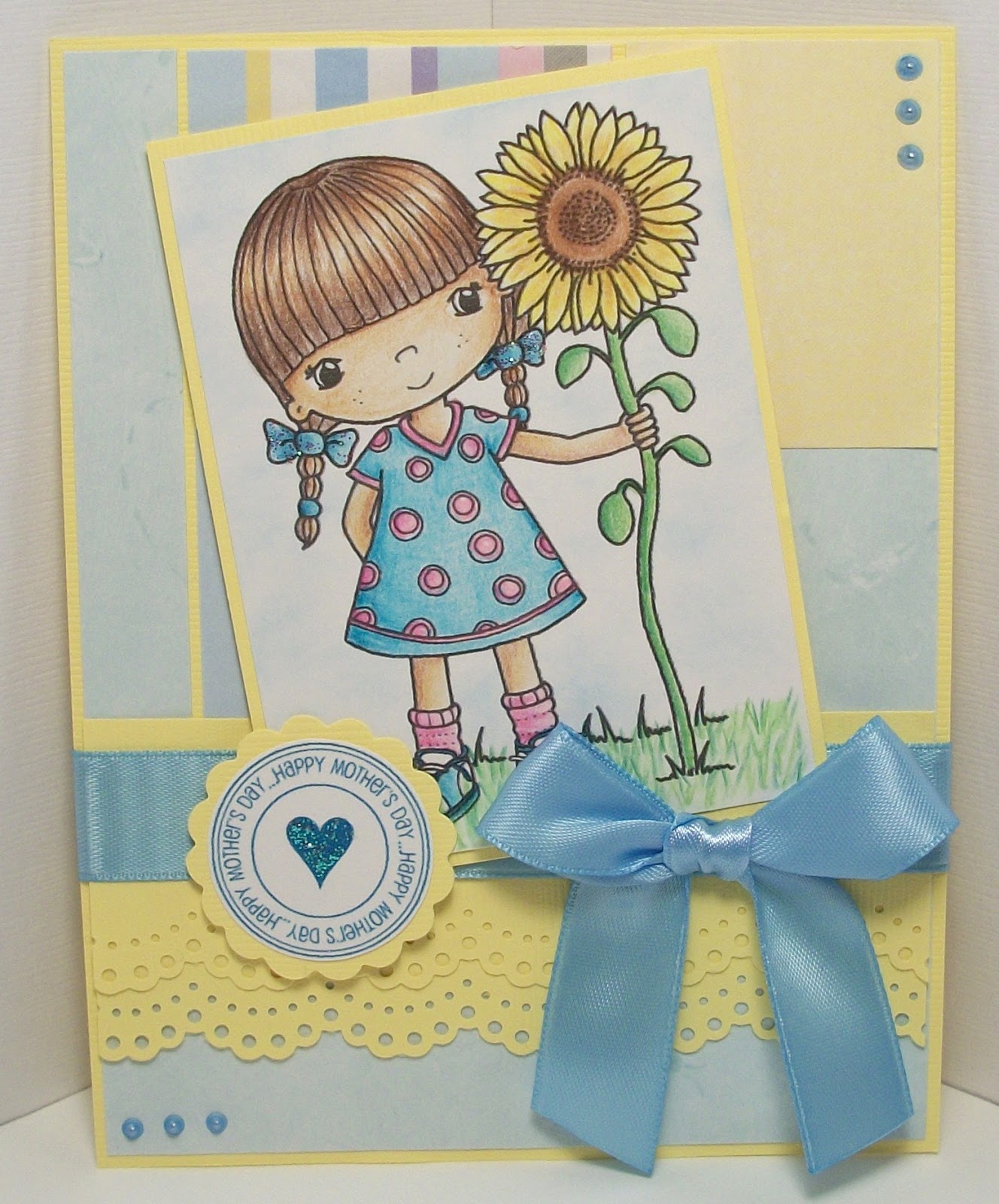 I printed the sentiment, which is from Create with TLC (works so well with this background) and then used a spellbinders die to cut it out and frame it with the light blue card stock.