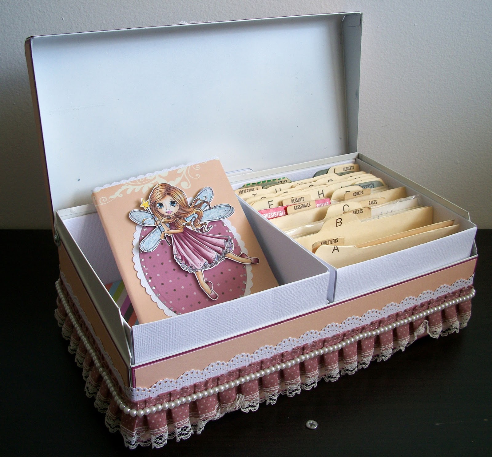 A few details about this project before I get to the pics. This past Christmas while we were visiting family in MI, my mom gave me my Grandma Veldink's old recipe box. It was full of all her fabulous recipes, but slightly dirty and falling apart. So I decided to fix it up a bit.