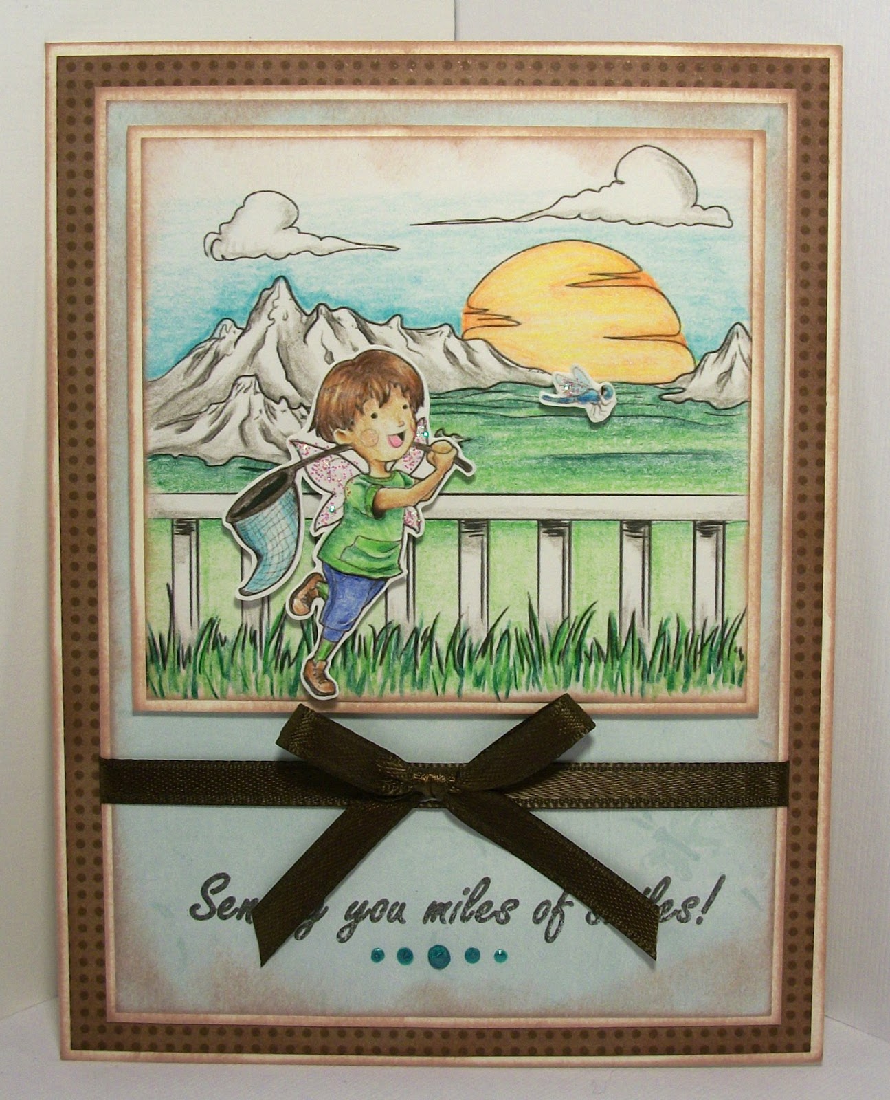 I completed the card by decorating the inside to match and adding my sentiment stamp. I realized after I stamped it that I could have easily put it on the front...but I had forgotten I had this little stamp until the front was done...so it went on the inside. And is so perfect for the card!