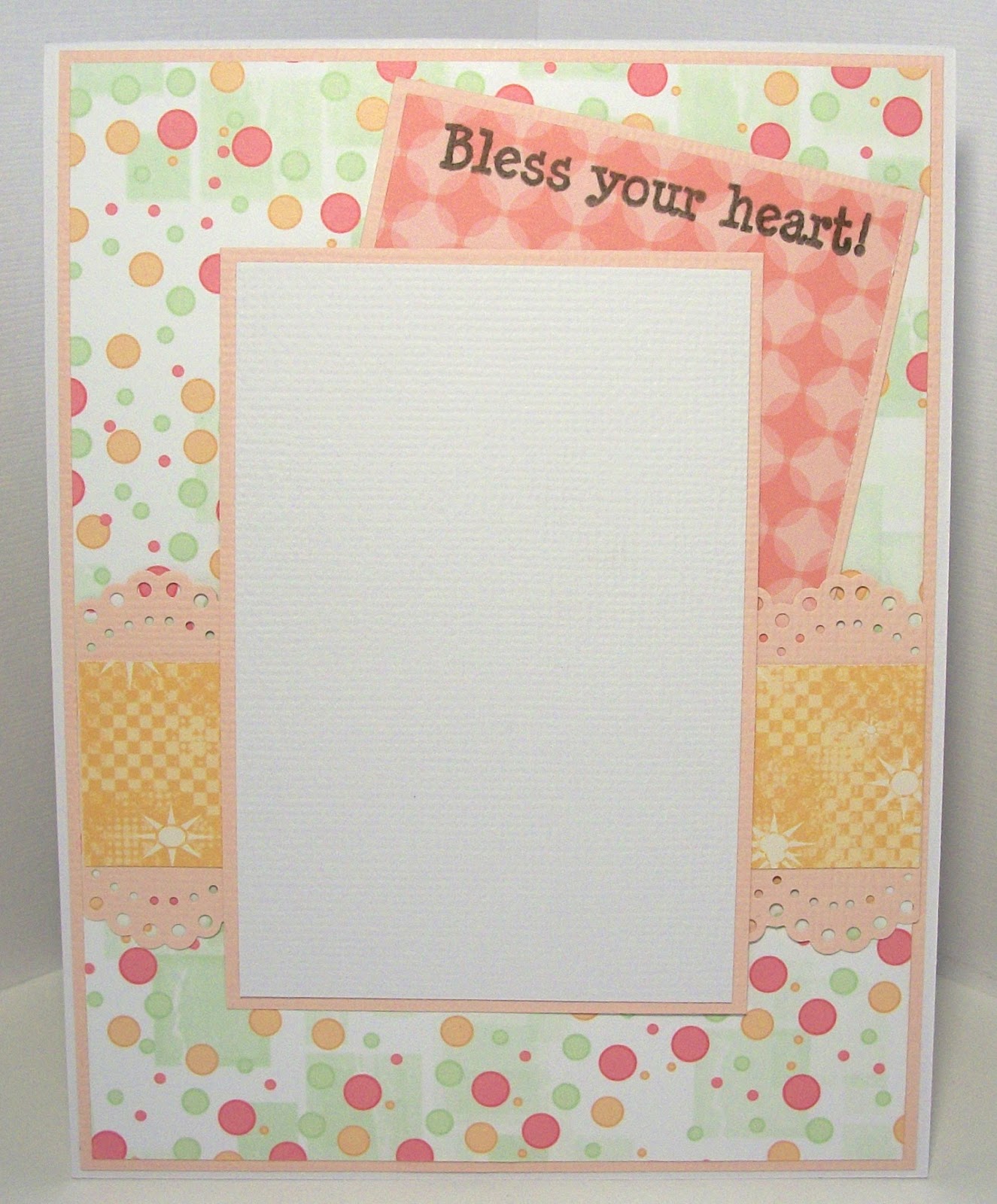 Back to my card! While home this past week, I was able to pick up a package full of goodies that I had purchased and mailed home to my mother-in-laws place. Shipping to the states is much cheaper and since we would be stopping in there, it worked out best that way. So the papers I used are from the Summer Sorbet line from Little Darlings! They are so fresh and fun! I love the sweet colors and adorable patterns on these papers, and they worked perfect for this card.