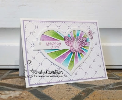 The main focal point of the card is that gorgeous die cut heart in the center from Concord & 9th called Heartstrings Die. I love this die cut but don't use it very often, so this card ended up being the perfect way to pull it back to the top of my stash. I die cut several layers and then used one of the layers to watercolor in all the little middle parts with the colors from the challenge.