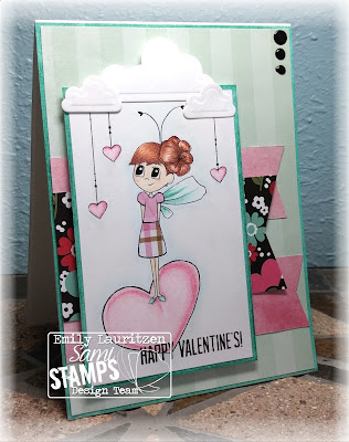 This is Heart Girl. I absolutely love her! She looks so comfortable and relaxed, just a perfect image. I used my ShinHan markers to color her for this card and then used one of the colors in her skirt to make matching borders for the image and the sentiment. I covered those with Wink of Stella glitter brush so that they sparkled a bit.