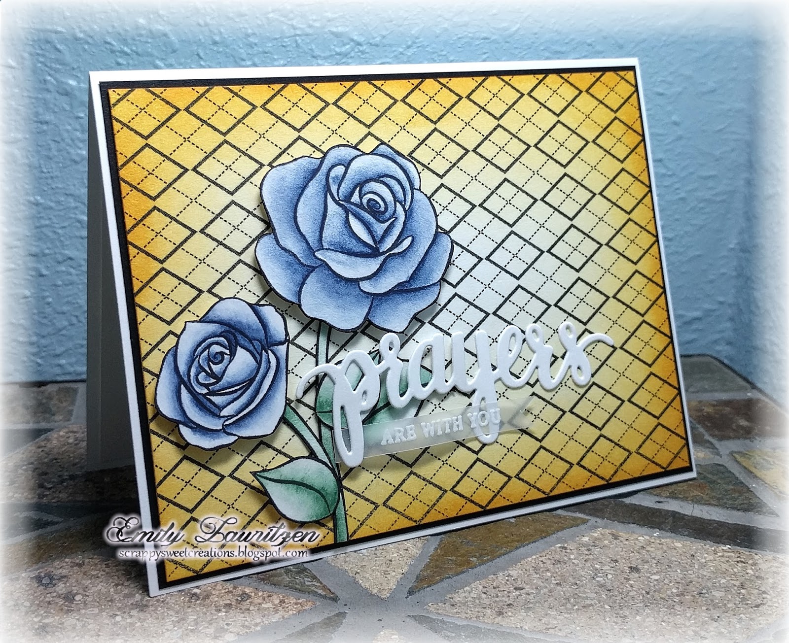 This background came together super quick and looks amazing! The tape was so easy to use, the glitter does not rub off and the sparkle is gorgeous! It's absolutely perfect for this card and image! I encourage you to try this out! Check out your washi tapes and see what ones will work together to create a fun new pattern for your card!!