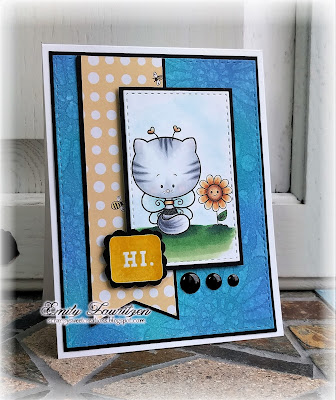 I paired this with a sweet little strip of bee themed paper and an embossed Hi sentiment.